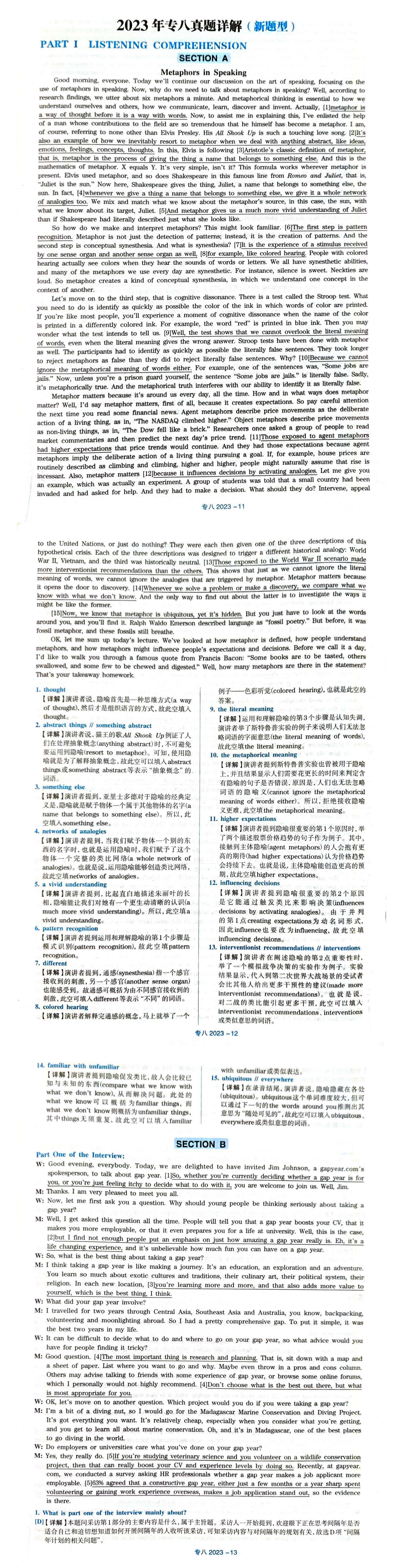 本文关键字: 2023专八真题及答案