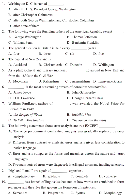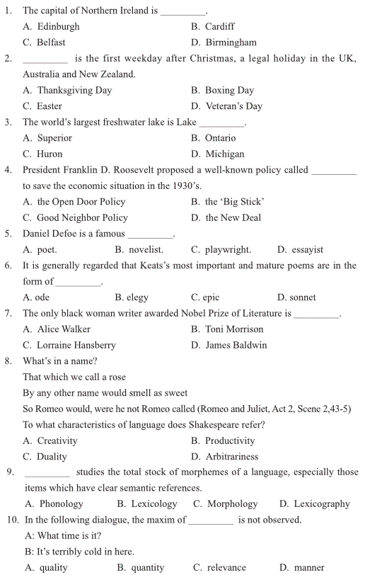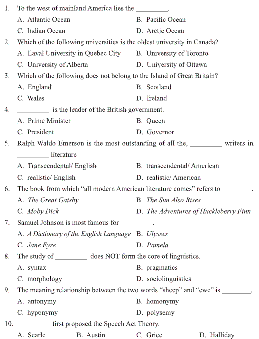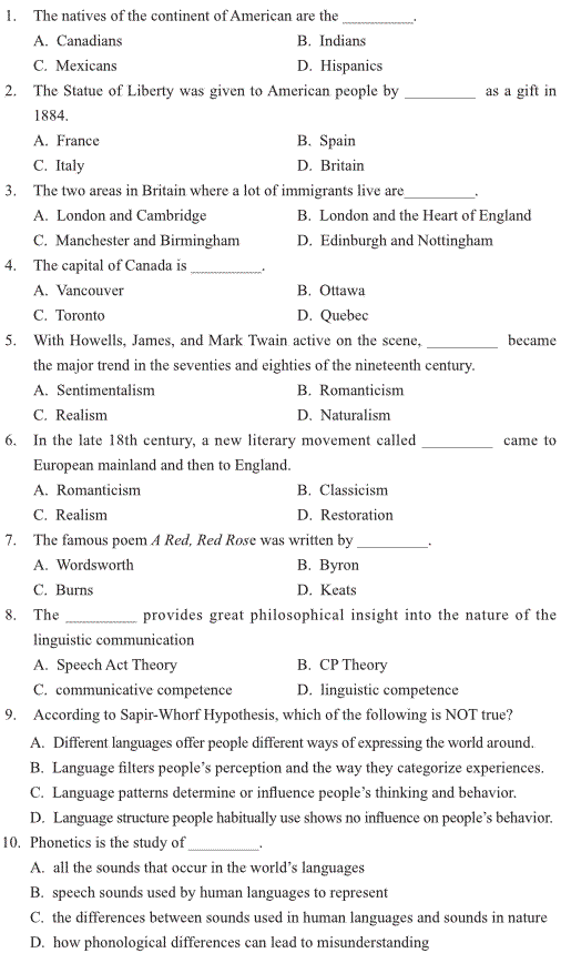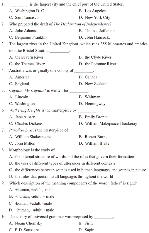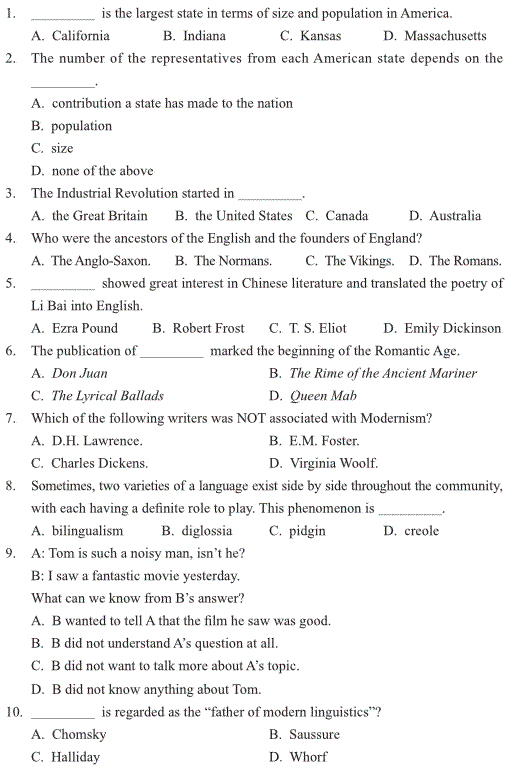 来源 : 考试大 10月29日 16:03 关键字 : 英语专八人文知识